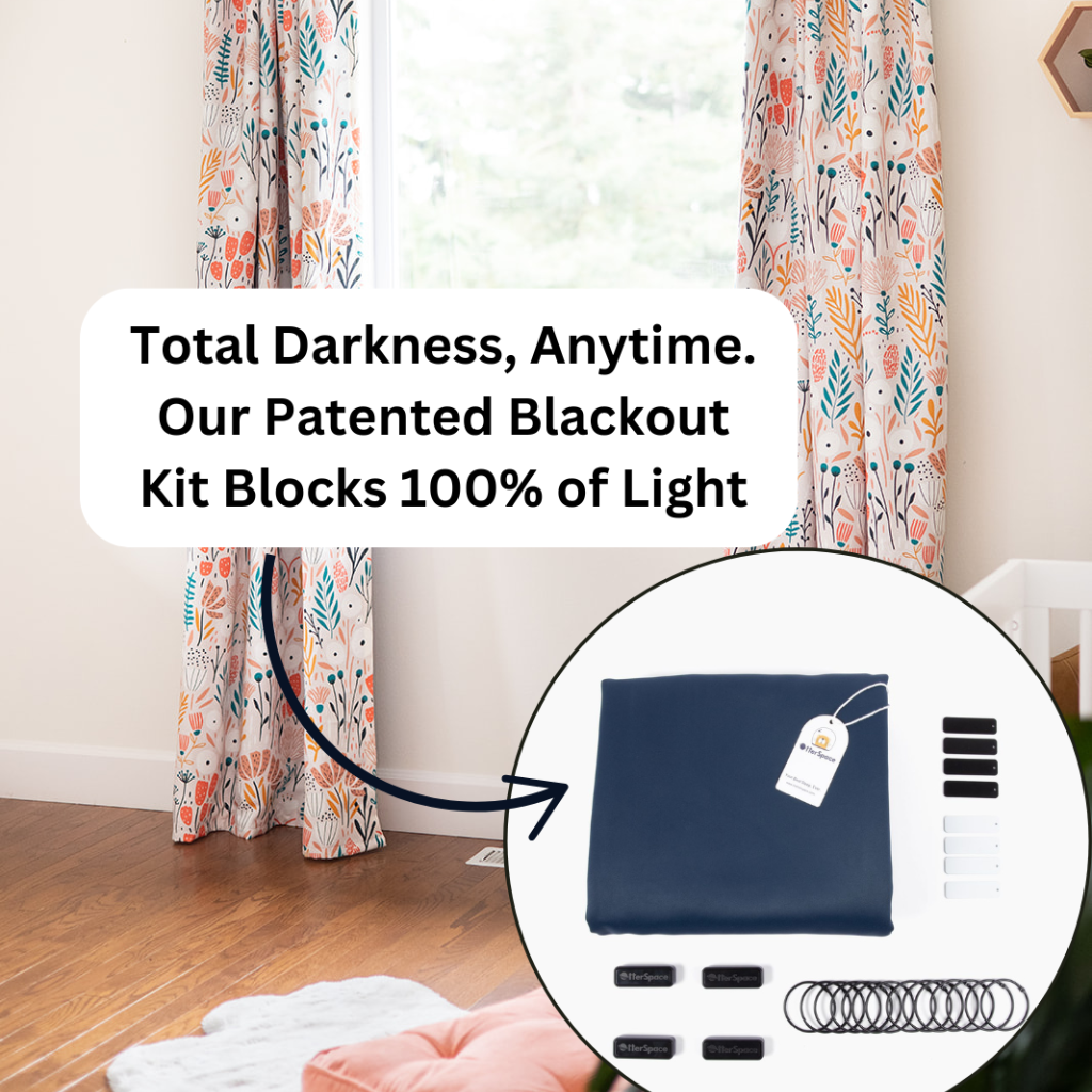 This blackout curtain panel provides 100% blackout. Easy to install with magnetic blackout blocks to seal off light leaks. Can also be used on the go. The link above saves you 10% off!
