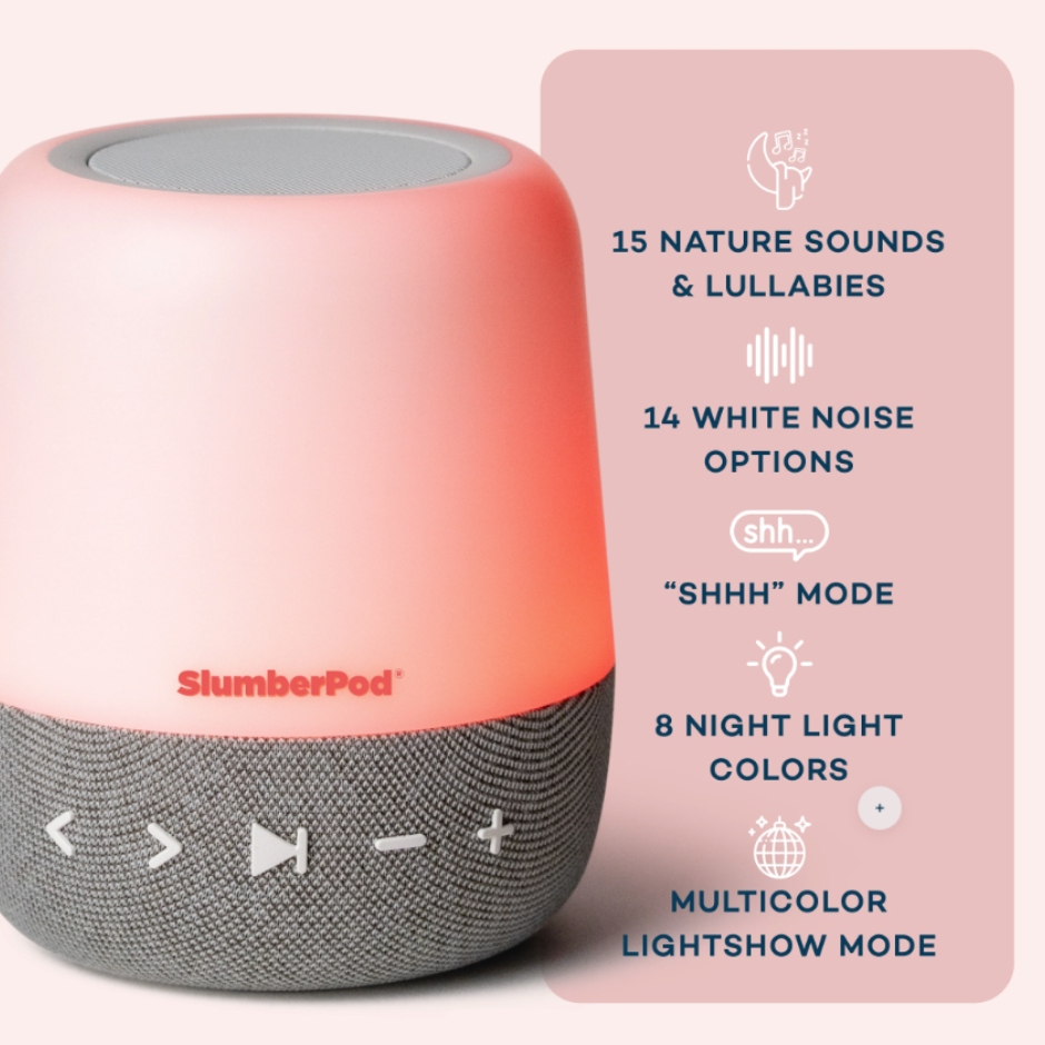 This is a new sound machine from Slumberpod. SlumberCalm’s white noise helps to drown out background noise and soothe your child’s nervous system. This sound machine has 14 white noise options, 12 nature sounds, 3 lullabies and a shhhh sound. Choose from 8 different colored night lights or use the light show feature. Use this sound machine plugged in or cordless (charged lasts all night). Save 10% off with the above link or use code KATIE10.
