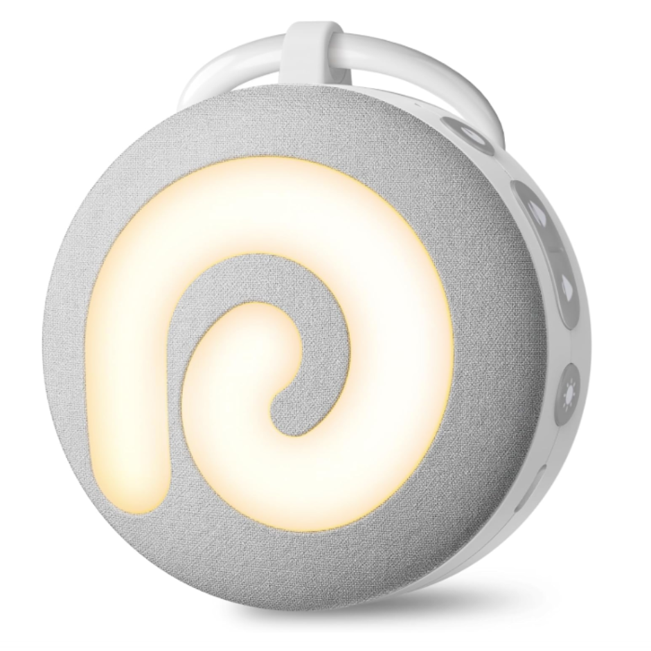 This is the number one sound machine I recommend. It combines a night light, sound machine and time-to-rise alert. It can be controlled from your smart phone with the Hatch App when outside of the room.